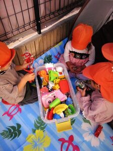 お外ではピクニック気分でレジャーシートを敷いて遊びました🌞